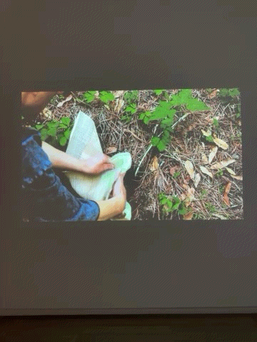 Works by both Apichatpong Weerasethakul and Kang Seung Lee approach nature from a queer, nonlinear perspective. With "For Bruce" (2022), Weerasethakul, a legendary Thai filmmaker, presents an homage to Bruce Baille, whose films superimpose and overlay footage in innovative ways. Weerasethakul’s similarly unorthodox landscapes, inspired by Baille, can become a foil to the unorthodox queer narratives in his own films. For “Garden” (2018), Lee performs rituals in the gardens of the respective homes where English artist and filmmaker Derek Jarman and Korean poet and activist Oh Joon-soo lived. Lee draws on sheepskin parchment at each garden, digs a hole, and then buries the parchment as a form of exchange and kinship with these artists, both of whom died of AIDS.