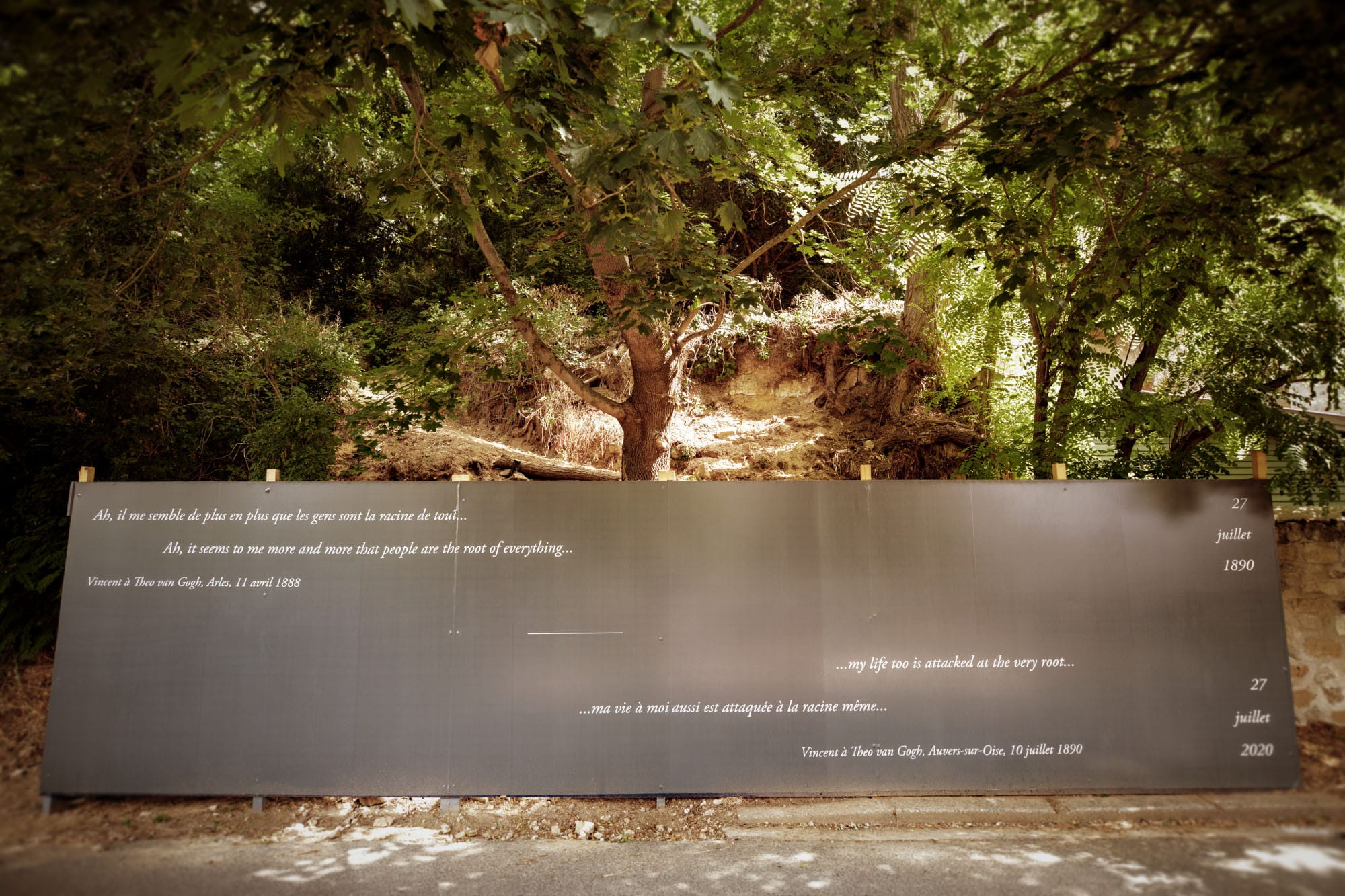 Wouter van der Veen, the scientific director of the Institut van Gogh, noticed the oil painting’s clear resemblance to a portion of a postcard from the French town of Auvers-sur-Oise, where the Dutch painter took his life in 1890. Dated between 1900-1910, the postcard shows mangled tree roots growing out of the hillside; when superimposed onto the photograph, the painting seems to be a perfect match. When France lifted its COVID-19 lockdown this May, Van der Veen was able to visit the spot and found the large trunk still looked as it had over a century ago.