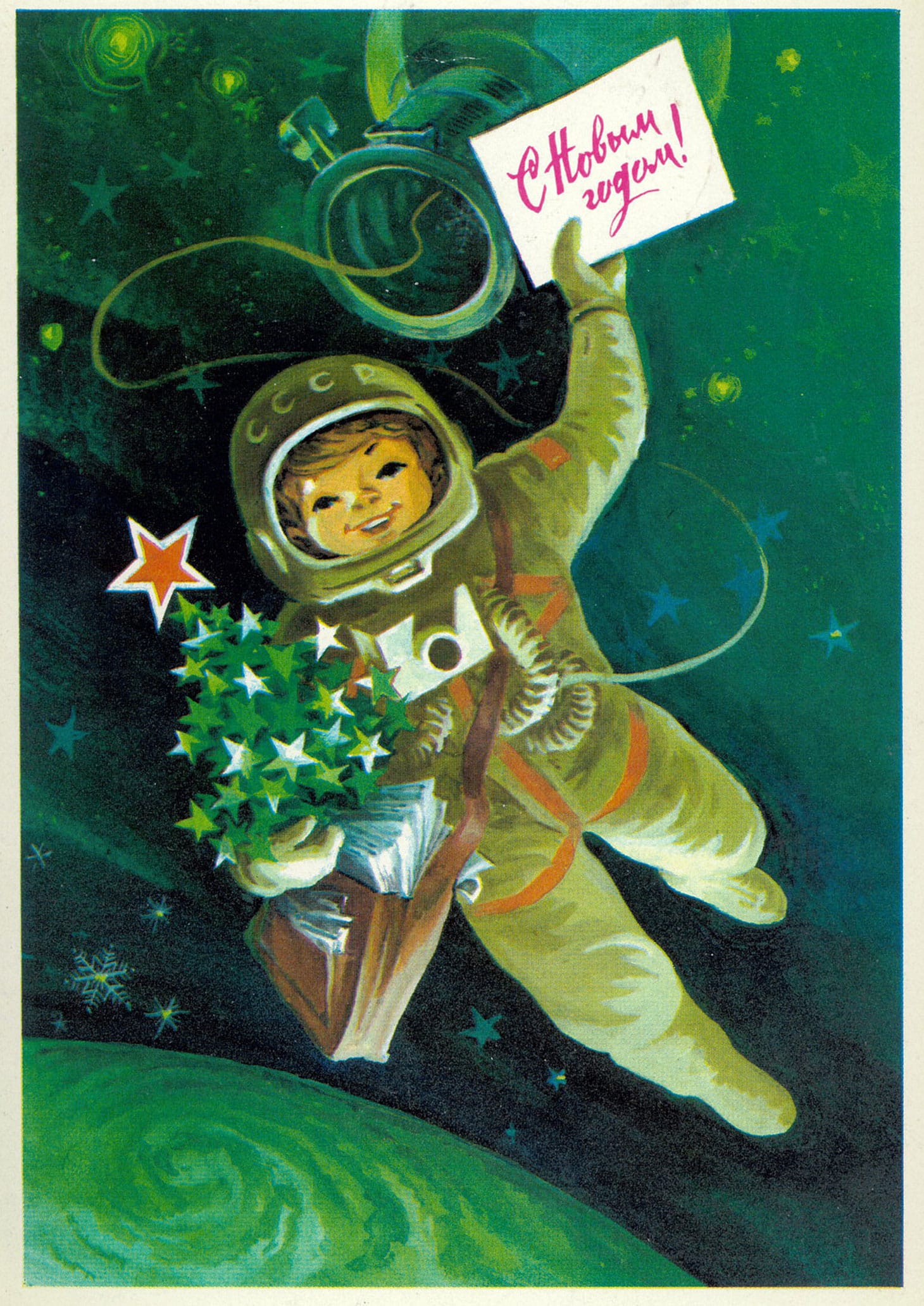 In these delightfully wacky vintage Soviet postcards, holiday tradition meets the vibrant schlockiness of ’70s sci-fi. However wacky they look, these images actually represent a sophisticated political project, one that uses the allure of nostalgia to create a vision of a utopian, space-age future.