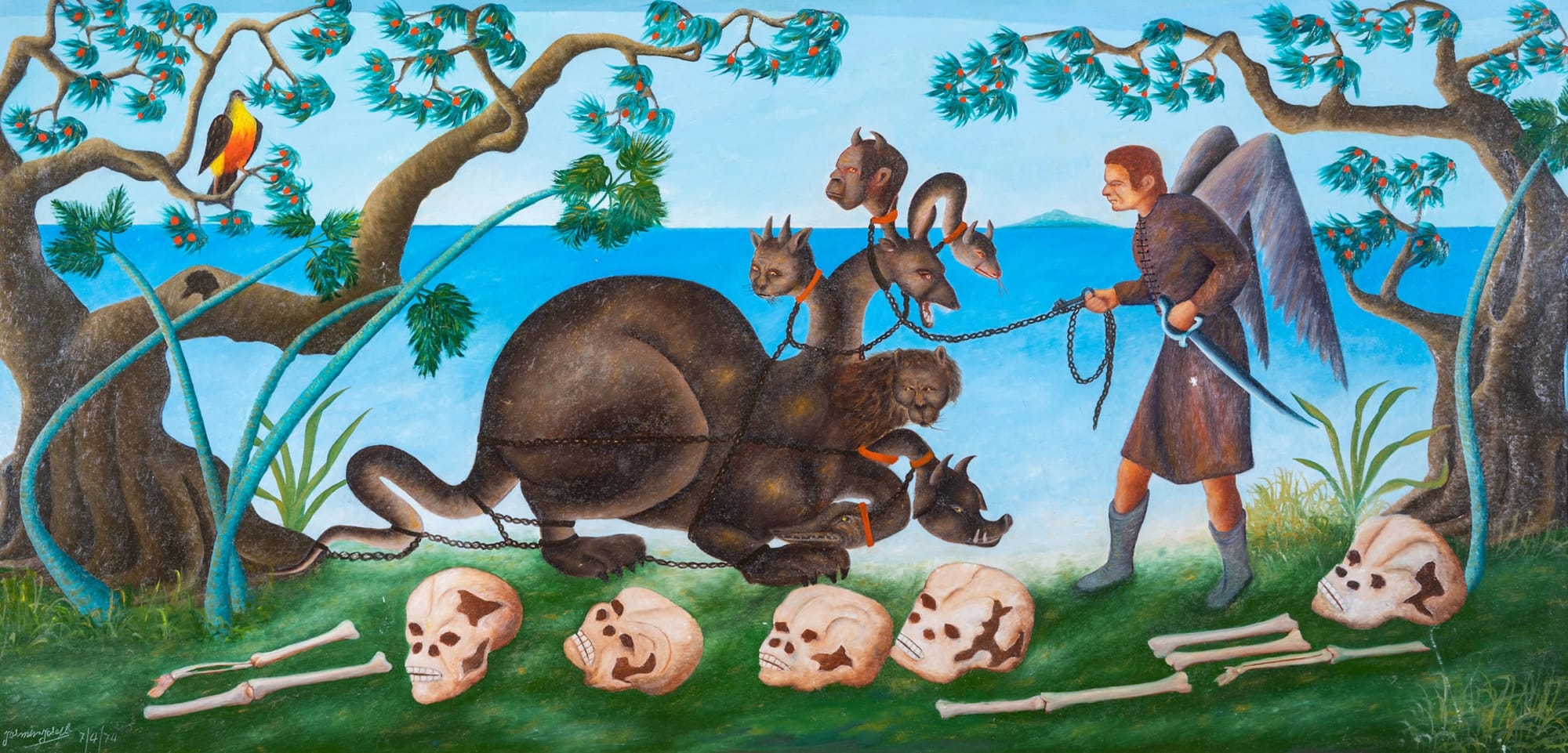 “Among the works by Philomé Obin is a self-portrait of the artist receiving a prize, as well as complementary works by his brother Sénèque Obin, allowing an opportunity to compare the artistic talent in this family,” Milbourne said, adding that many of the works reference Haitian politics and history, Christian and Vodou traditions, as well as activities like farming and fishing.