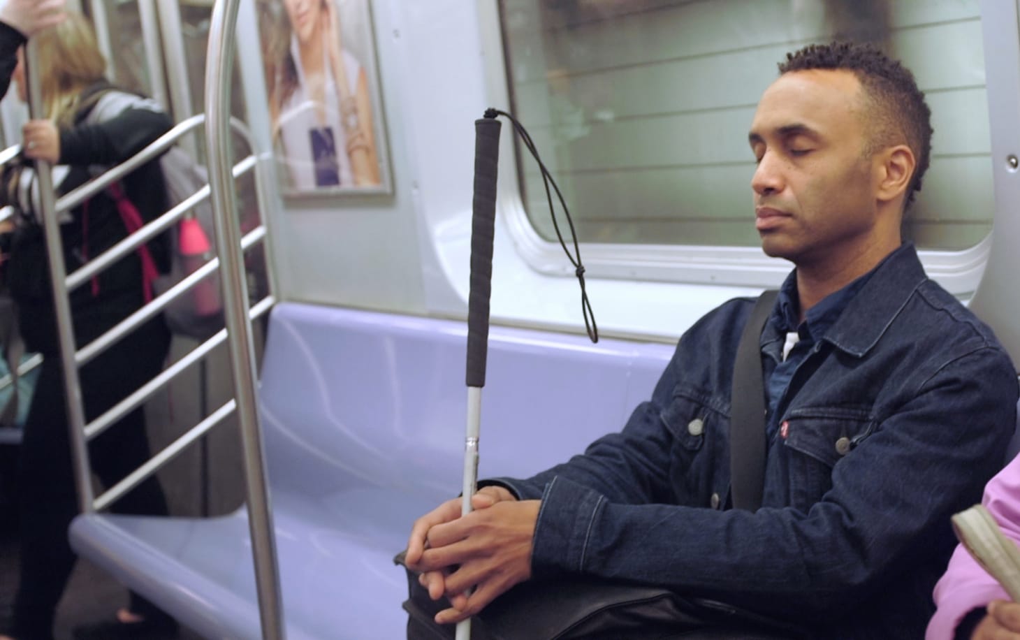 Hamilton’s perspective varies wildly from those of the other two artists, photographer John Dugdale and writer Ryan Knighton. Dugdale challenges the idea of vision loss as a loss of color and perspective, suggesting instead that it opens another way of seeing. Before he fully lost his sight, he was told by another blind artist that it would be “freeing,” because he would no longer be clinging to it, nervous about it, and waiting for it to be gone. Similarly, Knighton describes going fully blind as reaching “another side.” The film illustrates this idea with a train going through a tunnel, enveloped in blackness, and then emerging to light.