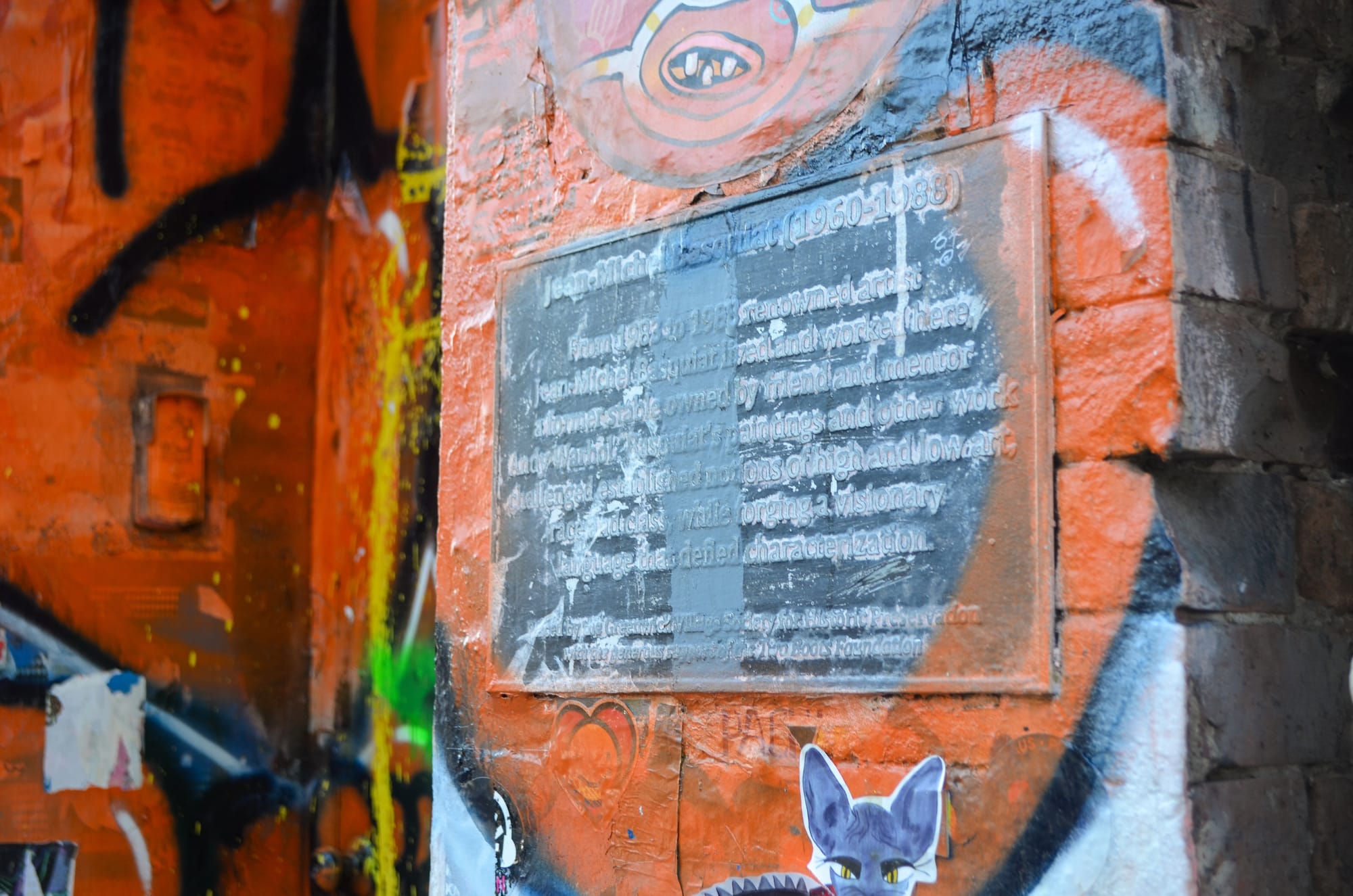 A plaque already exists on the building, covered in graffiti. "Basquiat's paintings and other work challenged established notions of high and low art, race and class, while forging a visionary language that defied characterization," it reads.