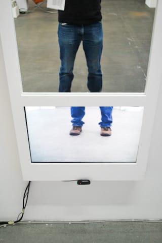 The next gallery was a collaboration between artist duo Nomeda and Gediminas Urbonas and MIT 4.333, a group of MIT students. The collaboration created interactive art that confronted how we view work and experience space while using military surveillance technology as their medium. One untitled work (pictured above) recorded viewers’ feet and played them back randomly as I looked at the part-screen, part-mirror installation. Watching my feet become one of many ghost-like forms on the screen created an anonymous yet connected feeling of viewership that I hadn’t considered much in all of my visits to museums. It reminded me of Tom Friedman’s “1000 Hours of Staring” (1992–97), where the work’s original form is added to by the process of viewership.