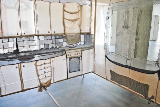 The final work in the (I)ndependent People was “Knitting House” (2012) by Elin Strand Ruin + The New Beauty Council. When I first entered the raw industrial space, I perceived it as a post-minimal textile installation. But once inside, you realize it is in fact a fabric replica of a typical Western postwar apartment complex. The work was really enjoyable to walk through. The combination of the common craft (from what I have discerned from my time in this country, it appears that all Icelanders knit) and installation art at a large and detailed scale was impressive.