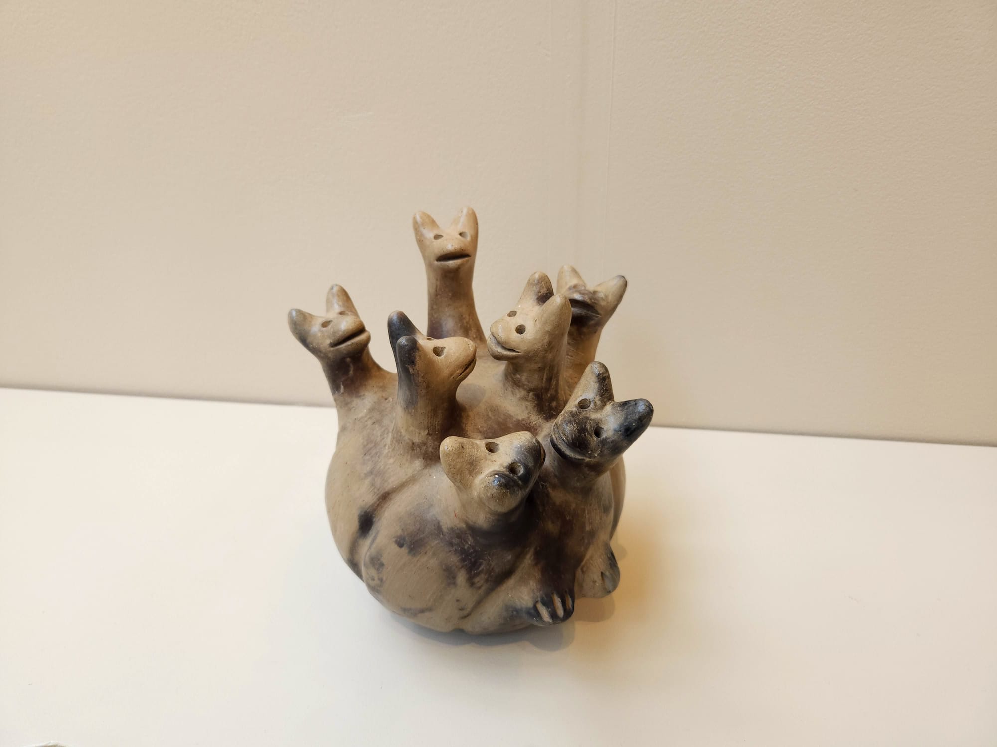 I coursed through the main space and was immediately ensnared by São Paulo gallery Gomide & Co's dual display of works by Paraguayan ceramicist Julia Isídrez and Brazilian artist Maria Lira Marques on cream-colored walls and custom-designed pedestal fixtures. Isídrez's animal vessels, which illuminate the biodiversity of the sparsely populated western region of Paraguay, were utterly darling with their roundness and playfulness. Associate Director Thamy Krüger Echigo told me that it was important for Isidrez to represent animals with their mouths open so that "they can speak for themselves." Marques's textured paintings, derived from natural mineral pigments, sing against the cream backdrops above Isidrez's ceramics.