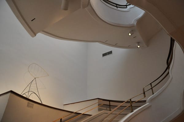 Alexander Calder’s “The Hollow Egg” (1939) sits on a ledge in the midst of the dramatic staircase in the main entrance gallery.