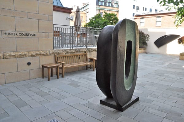 One of the unexpected delights at The Phillips Collection is the compact sculpture gallery, which is a quiet place dominated by two large sculptures, Barbara Hepworth’s “Dual Form” (1965, cast 1966) in the foreground and Ellsworth Kelly’s “Untitled (EK927)” (2004) on the far right.