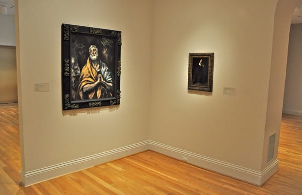 Unlike other museums, The Phillips freely mingles its collection so that you can make visual associations, like the obvious connection between the El Greco of the left, “The Repetent St. Peter” (1600), and the much smaller work on cardboard by Eugène Delacroix, “Paganini” (1831), on the right.