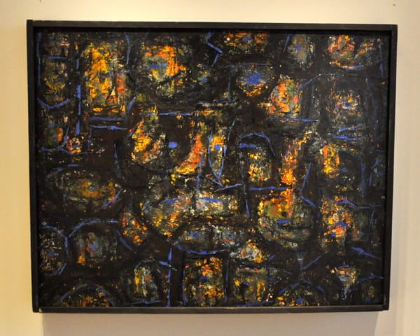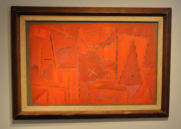 If every museum shows Kenneth Noland’s signature work from the 1960s, rare is the institution that devotes space to the artist’s earlier paintings . Here we see “Inside” (1950), which is an oil painting on masonite, that reveals Noland’s early experiments in Abstract Expressionism.