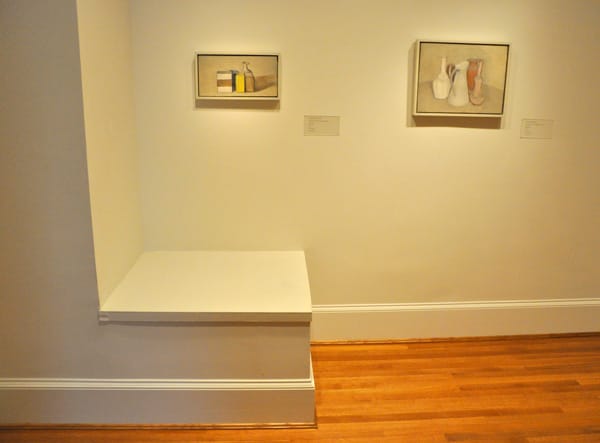 A quiet wall by the elevator is given to these two early 1950s still lifes by Giorgio Morandi.