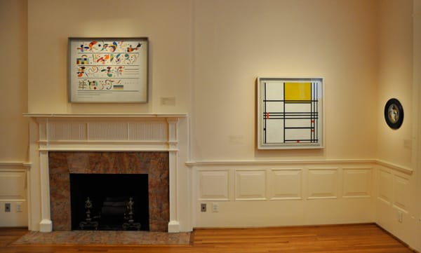 It was refreshing to see very modern works in a domestic setting, rather than the white box of most modern art museums. Surely this was the way most people during the era enjoyed these works. Left to right is Wassily Kandinksy’s entralling “Succession” (1935), Piet Mondrian’s “Painting, No.9” (1939-42) and a work by someone I don’t remember encountering, Louis Marcoussis’s “Painting on Glass, No. 17” (1920).