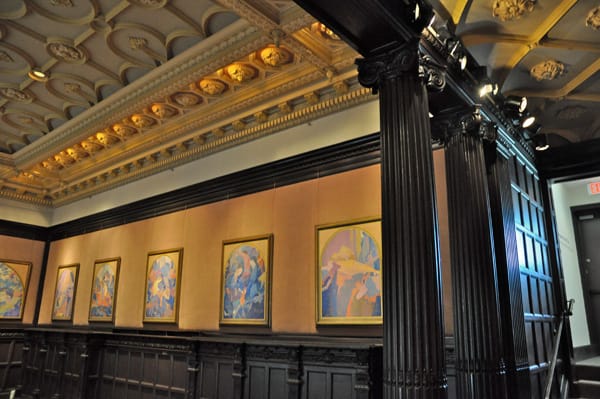 The Phillip’s music room is decorated with panels by Augustus Vincent Tack (1870-1949). Tack describes his paintings of the 1920s as “color-music” and these works were painting in 1928. The museum’s wall text explains that Tack’s work at The Phillips influenced many DC-based artists of the late 20th C, including Gene Davis, Sam Gilliam, Morris Louis and Kenneth Noland.