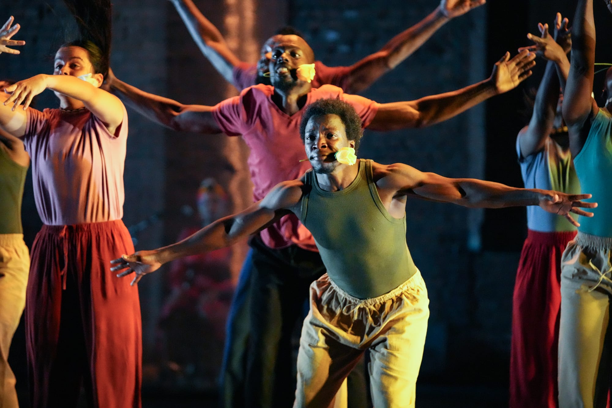 Acts of resistance dot the piece, modeled on the methods of survival deployed by Burkina Faso’s women to this day. In one scene, female dancers resuscitate each other — discarded, they band together and bounce their hips in joyful, groovy solidarity.