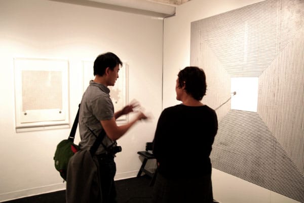 Finally, the intersection between art and science is addressed by Australian artist Joyce Hinterding, who is surely the only artist in the world who is also a card-holding member of the Commonwealth Scientific and Industrial Research Organisation (CSIRO) — he was presented by Breenspace Gallery in Sydney. Graphite drawings of simple fractals and visualizations of antiquated algebraic equations are hooked up to speakers by electromagnetic conductors, and the drawings’ “ambient electromagnetic fields” — apparently an innate characteristic of all graphite drawings — are expressed in sound.