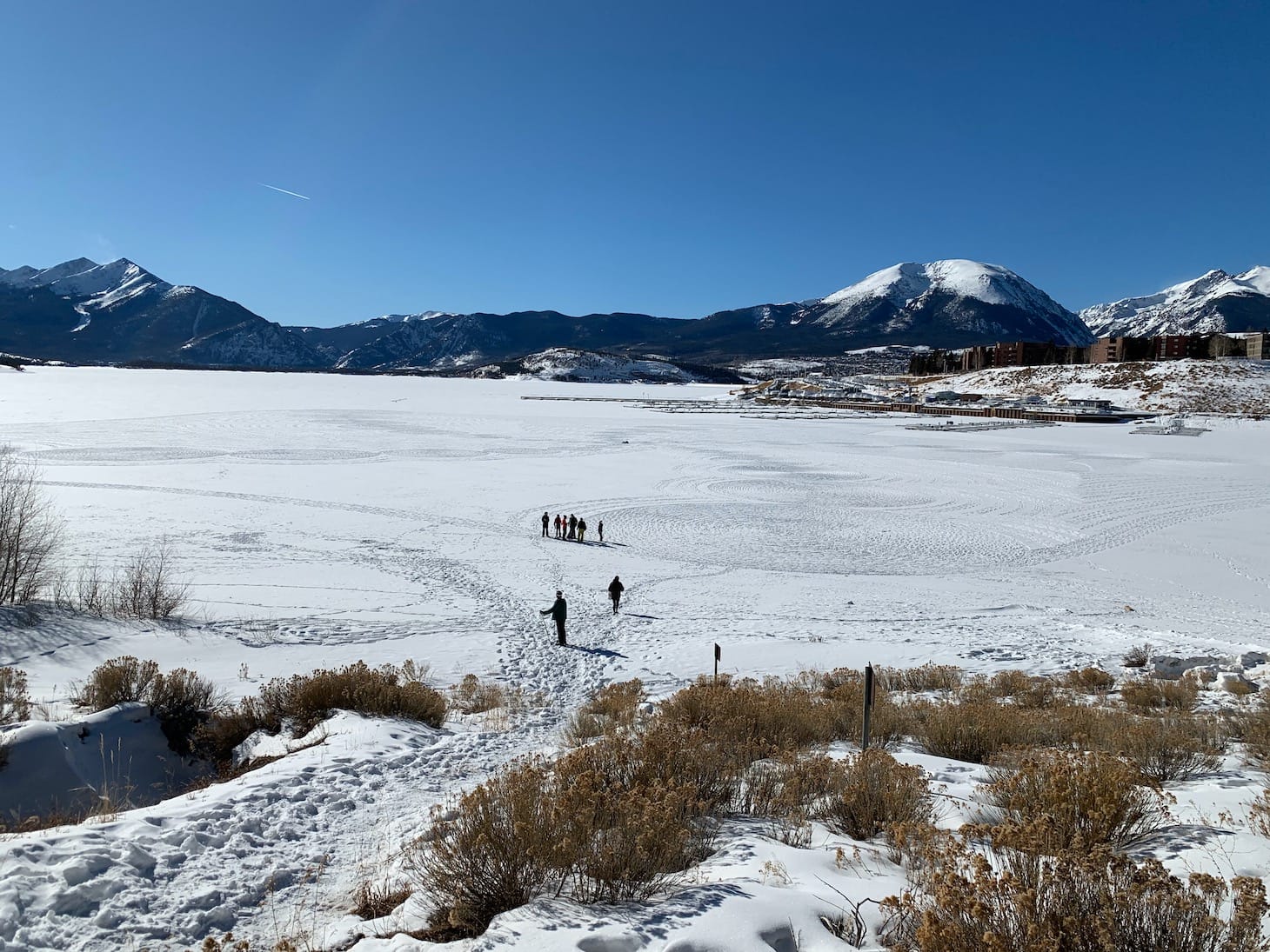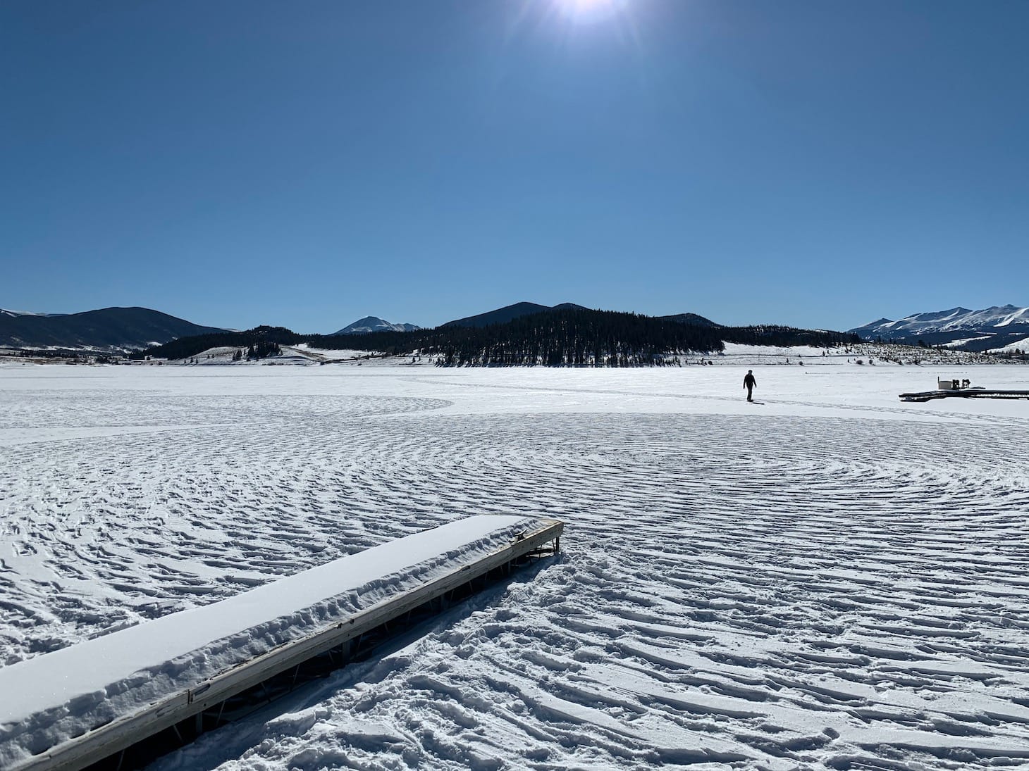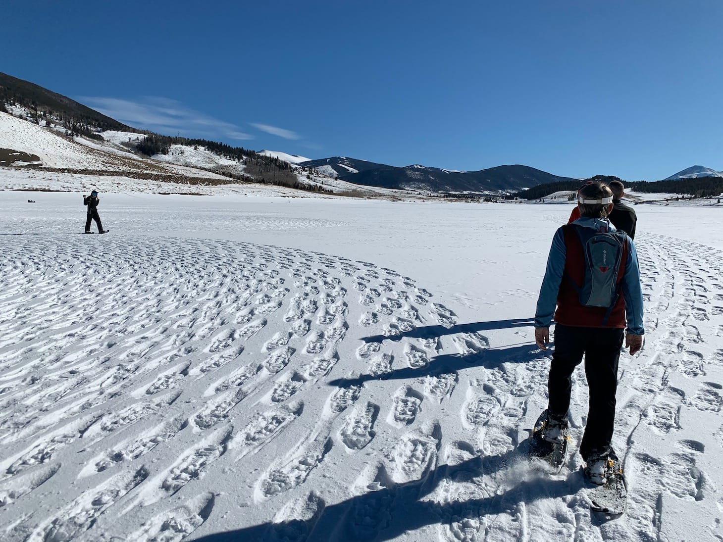 Practically my entire life, I have made tracks in the snow, whether with skis, snowboards, or snowshoes. But those marks, like when I search for untracked powder on my board, are essentially made selfishly. This was entirely different. Maybe only a handful of folks saw this finished drawing before it disappears with the next snowfall or strong wind. Fine. There was something gratifying about cutting a trail for others to appreciate. I left Lake Dillon with a blister on my right foot, desperate for some lunch and content with whatever came of the work we put in.