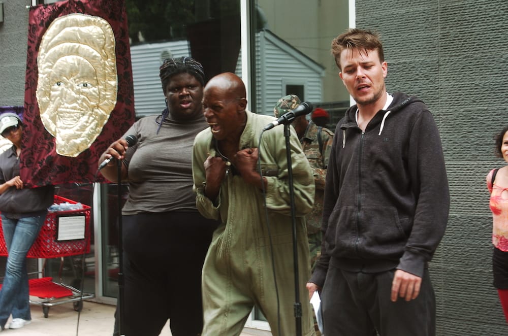 In addition, LAPD is planning a limited-edition publication this fall of this year’s performance scripts, with an introduction by Malpede and essay by Gudis, to distribute to community members without internet access. (It will also be available to buy on the LAPD website.)
