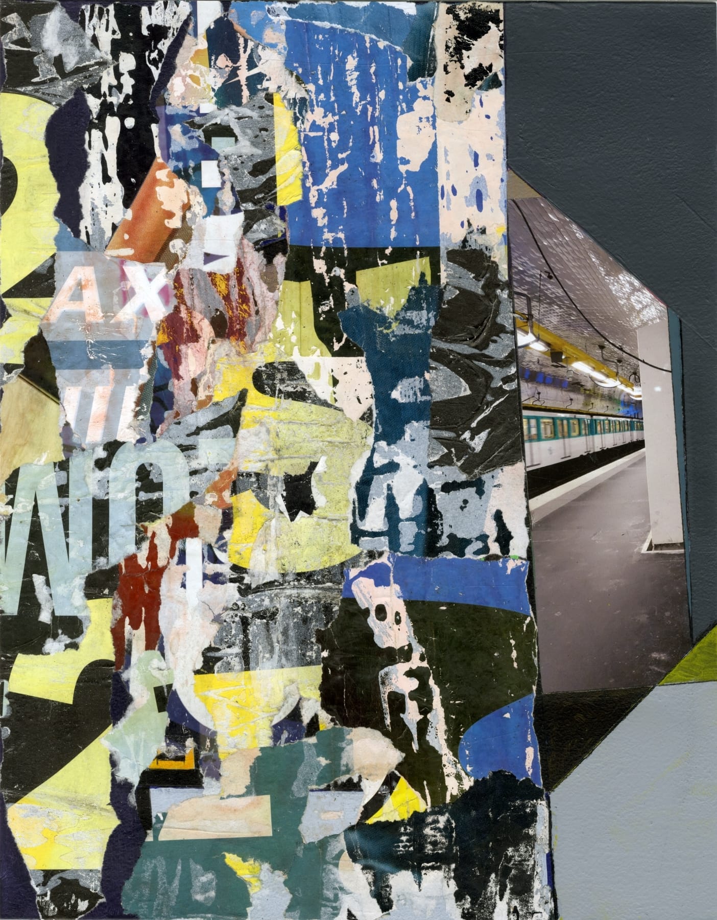 Mary Lum, "Rue Charlot" (2021), acrylic, found paper, and photo collage on paper, 30 x 22 inches