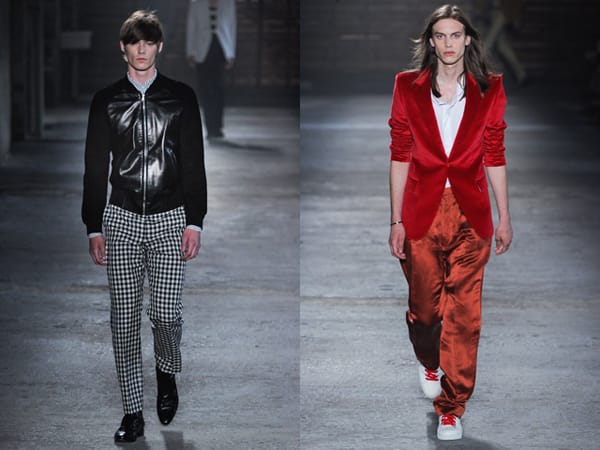 Softness has a place in menswear, just as it does in sculpture, but it’s the execution and application that determine its appropriateness and aesthetic value. The flimsy fabric and flowing shapes are too much of a contrast to predetermined silhouettes and existing conventions. Rick Owens does the best job of creating cohesive, head-to-toe looks that drape beautifully, but all in all there’s no seamless (pun intended) transition between the hard and the soft.