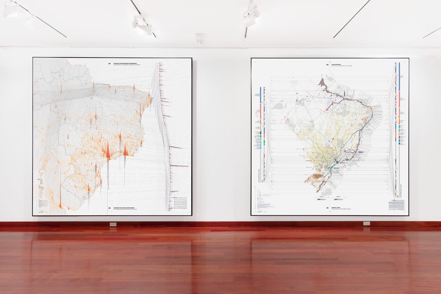 The four curators conducted the research for their 10 large-scale maps with a multidisciplinary approach, bringing in over 200 collaborators across 10 different disciplines, including anthropology, politics, and medicine. Their research provided data on topics as disparate as migration, carbon emissions, and Brazil’s geographical border.