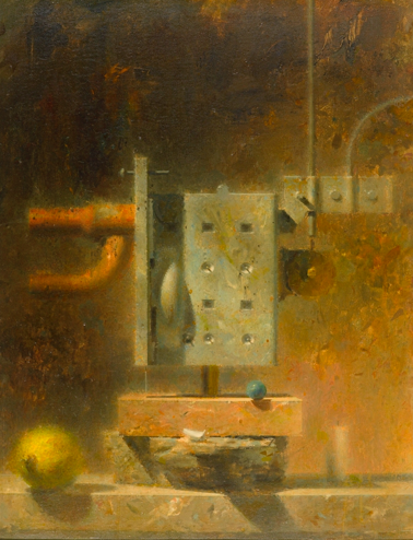 Judy Collischan notes in her essay that Murch’s still lifes can be divided into three main groups, “machines, geometric volumes, and organic materials,” with all sometimes represented in the same canvas. In “Car Heater” (1967), for example, Murch sets the titular mechanism atop a rectangular block alongside a lemon, the whole set-up bathed in that luminous air he rendered so skillfully.
