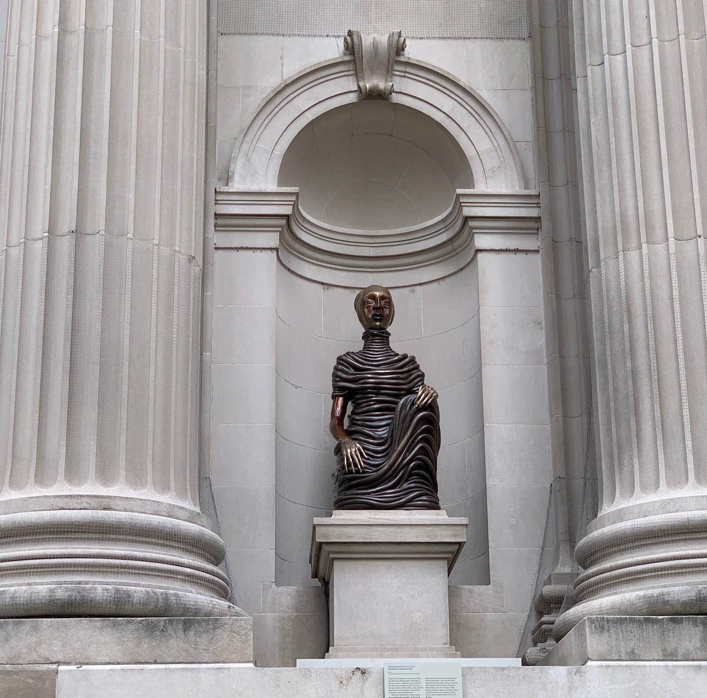 For the first time in 117 years, the empty niches on the museum's exterior are occupied. Mutu's four bronze sculpture express resilience and wisdom.
