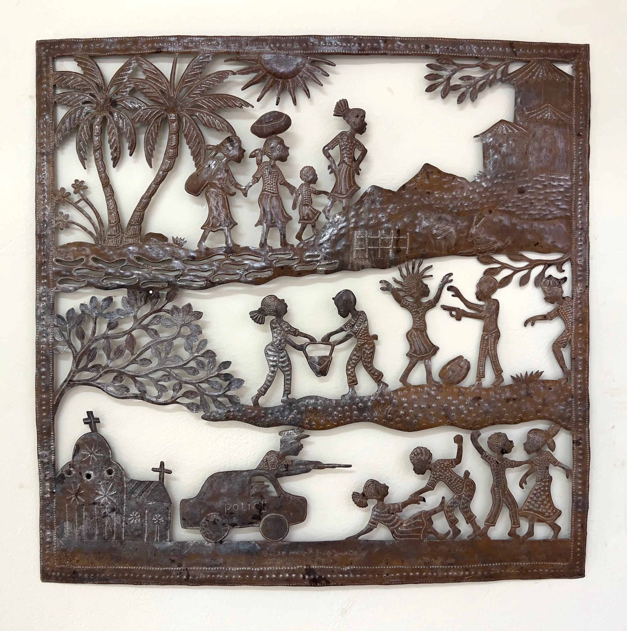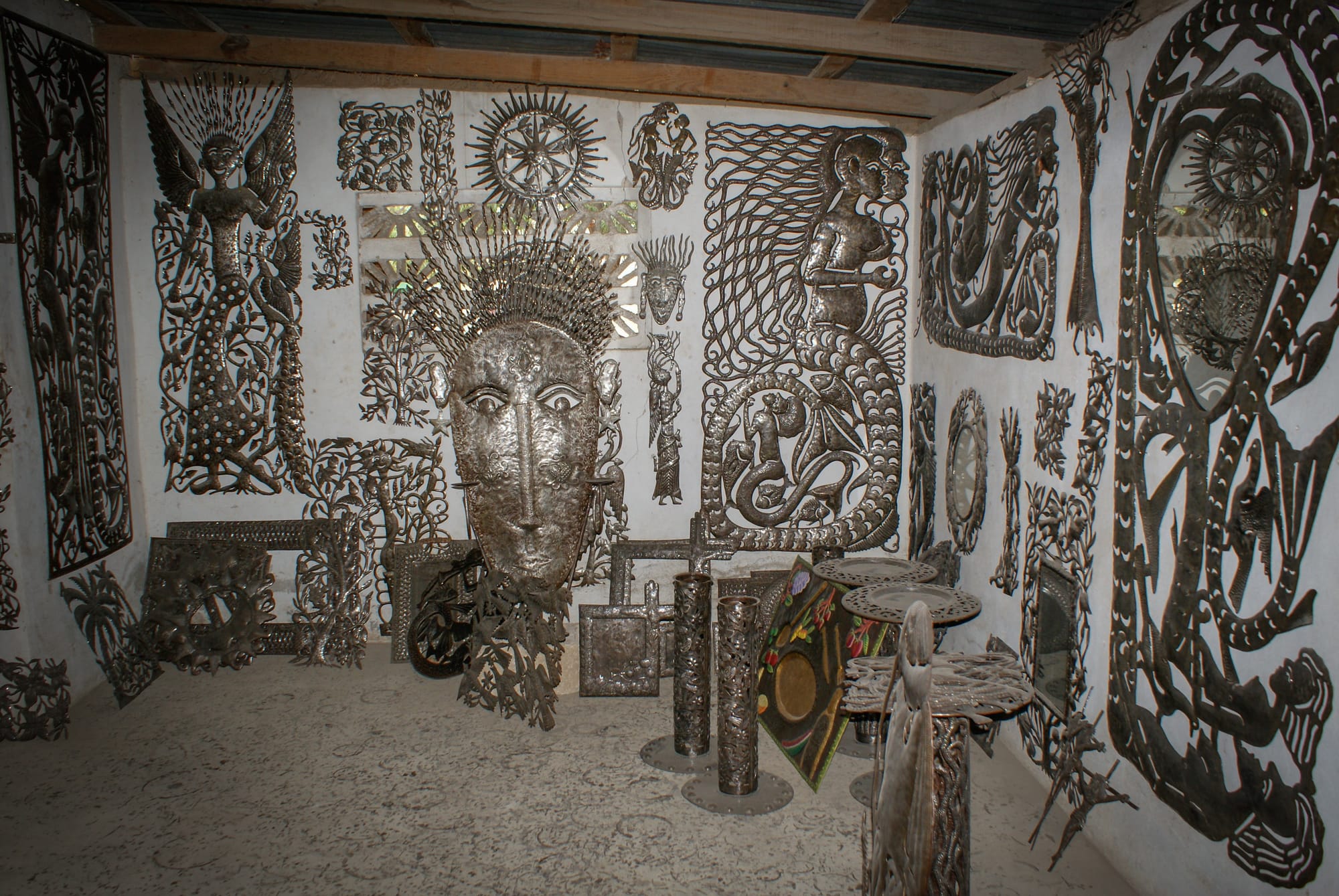 The Village Artistique de Noailles, located in the southern commune of Croix-des-Bouquets, was once home to more than 300 families of artists and metalsmiths working in a tradition passed down over four generations. Over 70 workshops and storefronts were operating seven days a week to produce decorative and functional metalworks cherished the world over.
