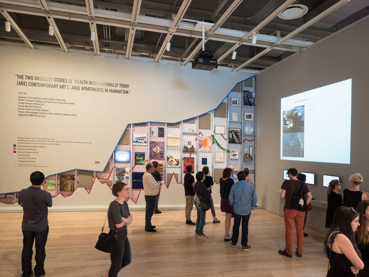 Why has it become art’s job to challenge finance in these ways? We have been led to imagine that art stands nobly above the vain, venal, and material concerns of the world and has a privileged moral vantage on the crass world of money. But that is far from the truth. In fact, “art” as a category of human activity distinct from craft and ritual only came into existence in the shadow of and because of the market created by capitalists from the Italian Renaissance onward. From the age of imperial looting to today’s equally violent global capitalist network, art has always been shaped by finance — one need only look to the boards of major contemporary art institutions to see the links. But, ironically, it is this intimacy that gives art its critical edge to upset and challenge finance and, importantly, to help us discover the otherwise hidden sources of collective potential in a financialized world.