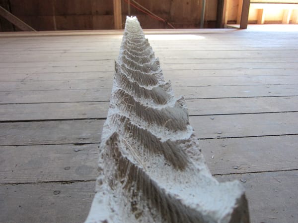 We ended our visit at Luther Barn, a converted livestock auction barn where Wassaic Project residences have studios between the corral fences and give artist talks in the auction ring. I spotted that strange slingshot I’d seen from the train, along with the stick teepees, on the sprawling lawn outside the barn.