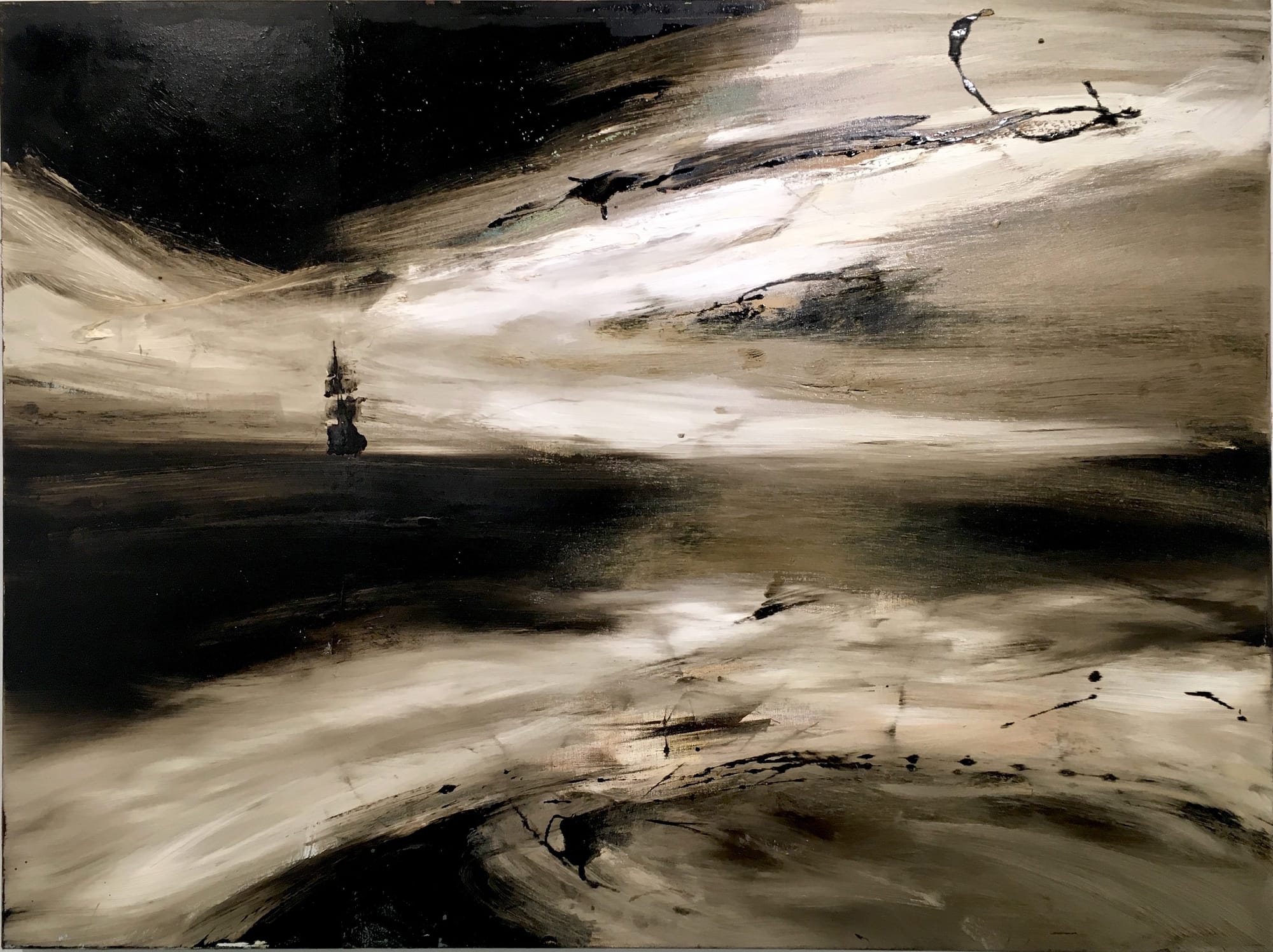 The event will also be held in conjunction with artist Christopher Volpe's exhibition Loomings at the Whaling Museum. Taking its title from the first chapter of Moby-Dick, the exhibition draws parallels between the over-extraction of fossil fuels during the industrial age and Melville’s apocalyptic vision of the American quest. It does so through a series of haunting marine-themed paintings made with liquefied coal tar, a byproduct of the refinement of petroleum and the successor of whale oil, which was used to fuel ships and trains before the discovery of petroleum in 1856. Each work’s title quotes or alludes to Moby-Dick.