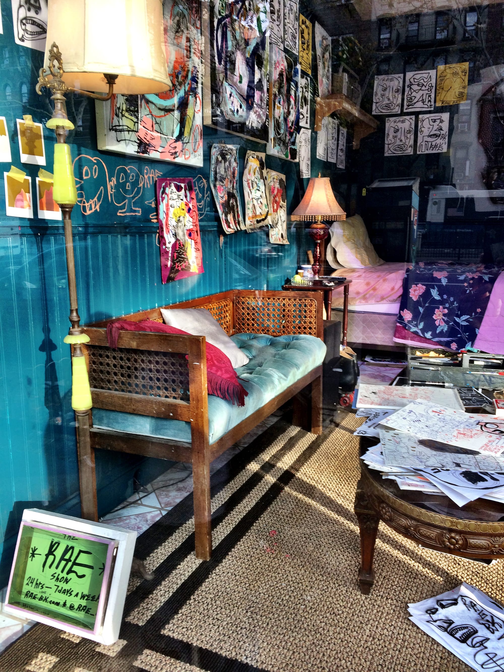 Brooklyn street artist RAE is spending 24 hours a day, seven days a week, living and working inside the storefront.