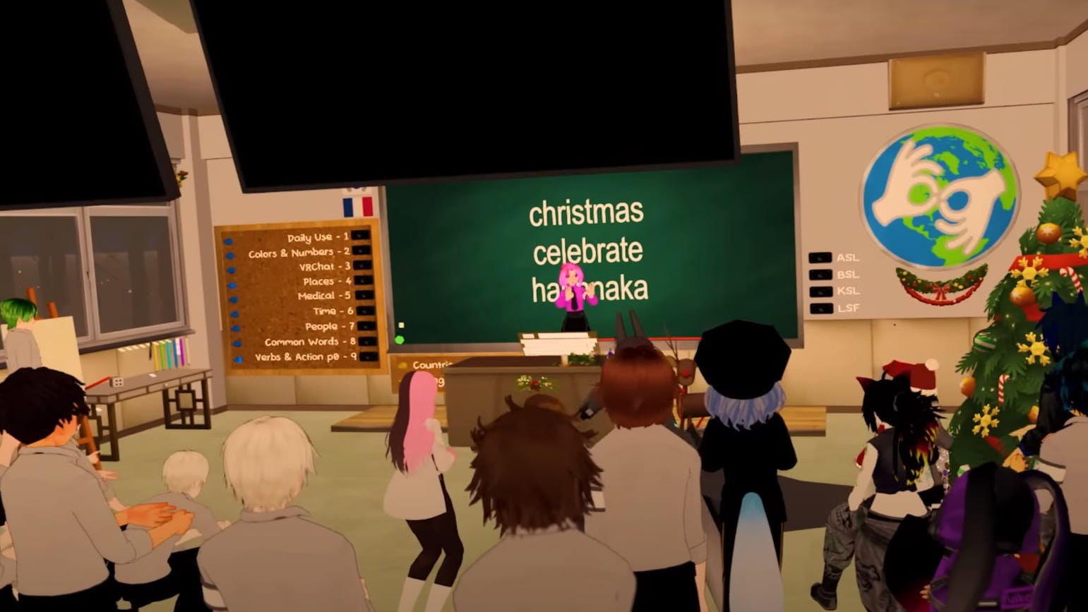 The unique benefits of that virtual element can't be overlooked, though. Many of the subjects in We Met in Virtual Reality discuss how they're fans of the platform because of the safety it affords — whether it's to express their gender freely, embark on risk-free sex work, or simply hobnob without the risk of catching COVID. And that's to say nothing of how games like this can facilitate connections between people in vastly disparate parts of the world who would otherwise likely never find one another. Some of these little communities are quite lovely; one of the more prominent is an American Sign Language learning group. As one bubbly host notes, this is the kind of thing VR is uniquely suited for, as the controls allow for a level of precision in hand gestures that other video games don't, while the pseudonymous use of avatars can put users who might be uncomfortable with video chat at ease.