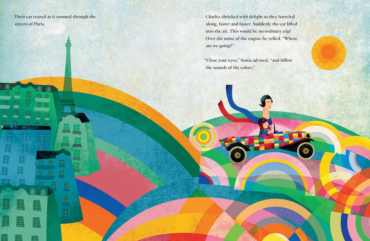 Another MoMA children’s publication, Sonia Delaunay: A Life of Color, written by MoMA Curator Cara Manes, with illustrations by Fatinha Ramos, explains the principles of Orphism in a way that’s accessible to children and takes an artist whose work is often overshadowed by that of her husband and moves it to the forefront of a notable abstract movement. I appreciate both on behalf of the youngsters, but the fantastical story of an artist mother using a flying car to jet around Europe to explain how colors can represent movement and sound reminded me that abstraction can be pure pleasure.