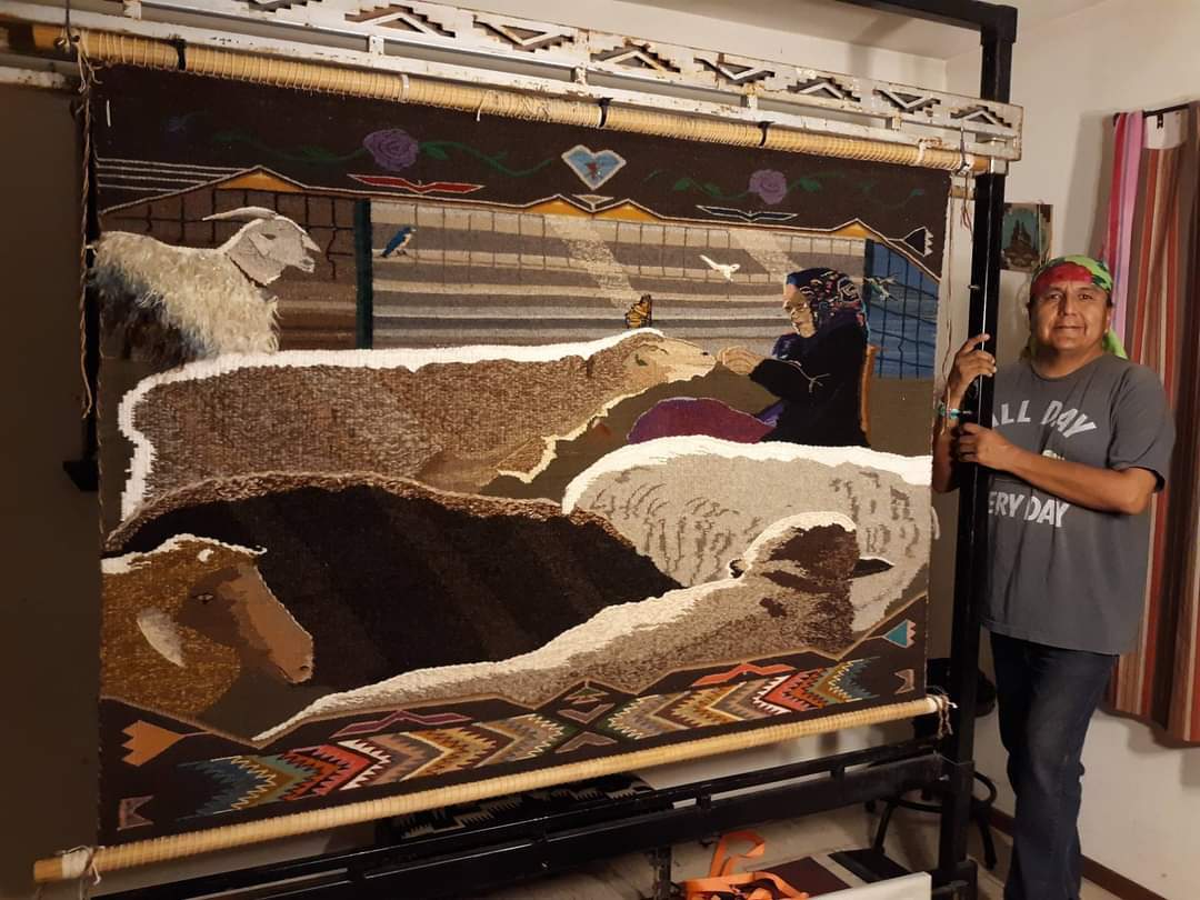 Diné weaver and fiber artist Roy Kady sat down for a video interview wearing a shirt that read "Sheep is life." Kady is a shepherd and an artist, roles he sees as definitively intertwined. "I am first a shepherd, then art comes with it," he said.