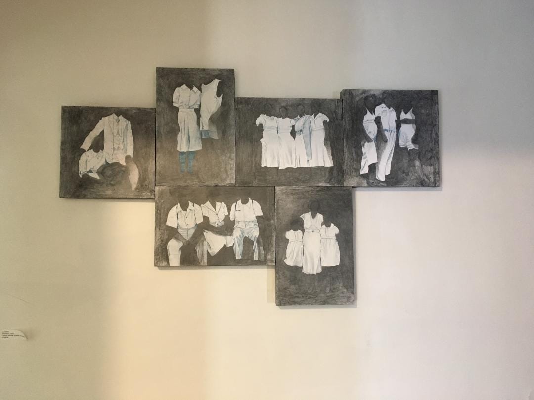 Lu Heintz, “Remnants” (2019), carbon transfer, graphite, and paper on panel