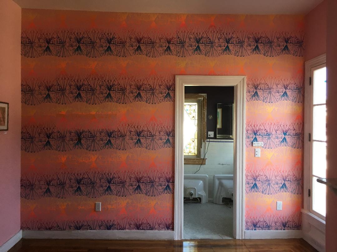 Wallpaper on the second floor, designed by Lara Henderson