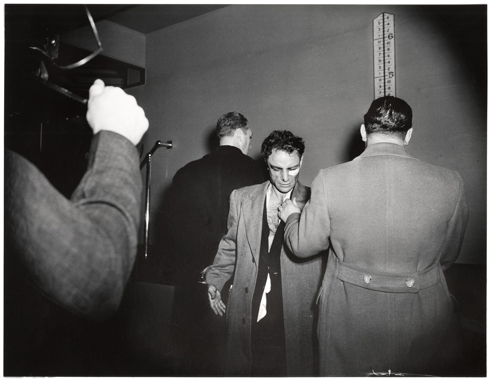 For most of his early career, the photographer lived on the precarious margins of society, always on the go and often in a state of near homelessness. (He also worked odd jobs, including as a movie theater fiddler for silent films.) Weegee’s first photographic employer, Acme Newspictures, wouldn’t send him out during the day unless he wore a white shirt and tie, so he began taking to the streets at night, flying from disaster to disaster in a rented ambulance that he turned into a darkroom: A three-alarm fire brought him a three-dollar bonus, while a five-alarm fire got him five. Weegee worked hard to cultivate his identity as an eccentric. Though he was neither able nor willing to become an integrated member of New York City’s art world society, the photographer branded himself “Weegee the Famous” and readily took up the role of an object of curiosity among the elite. Eventually, he moved to Hollywood, where he even had a brief stint as a character actor.