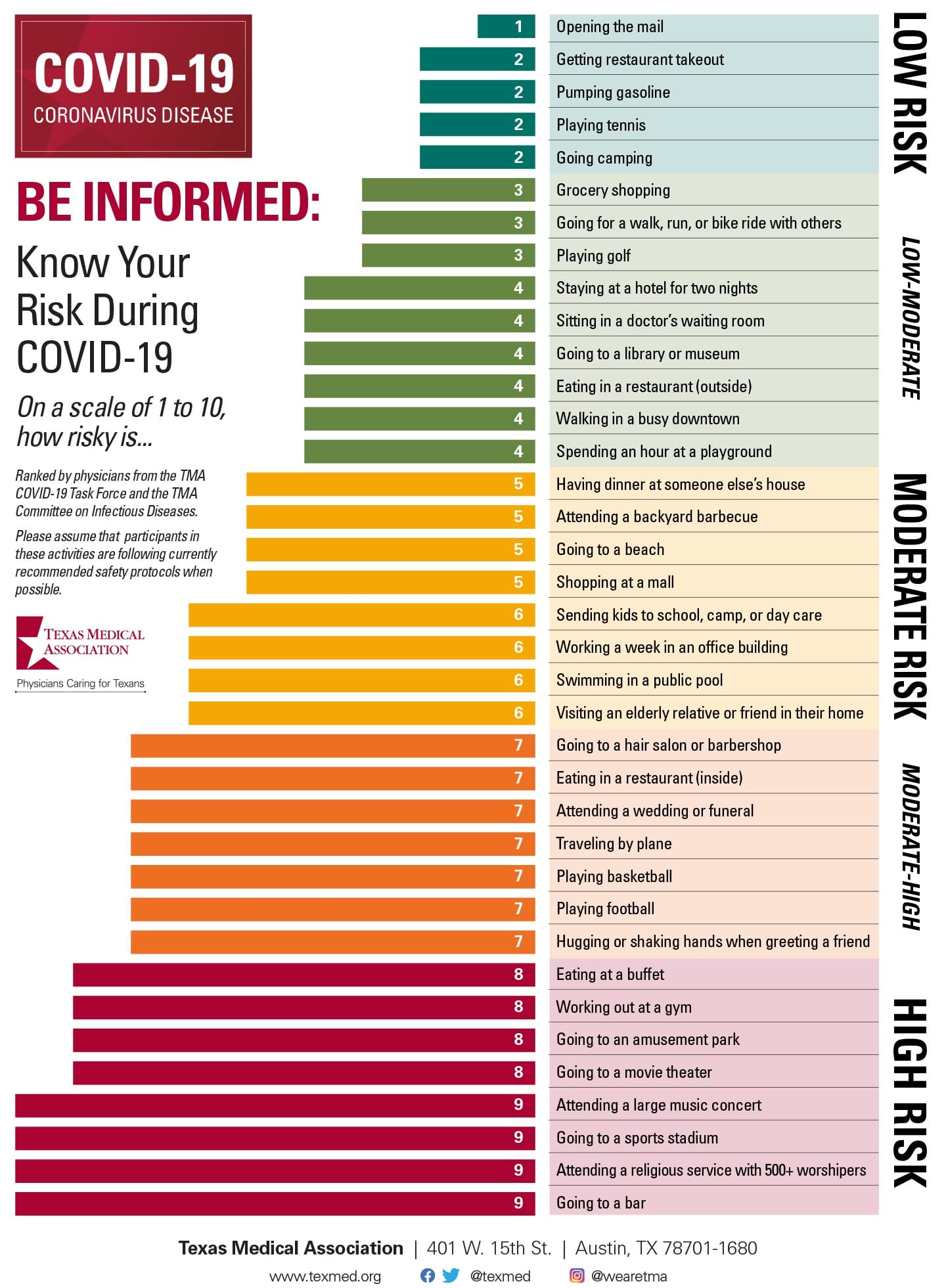 How risky is visiting a museum during the COVID-19 pandemic? A graphic by the Texas Medical Association provides some answers.