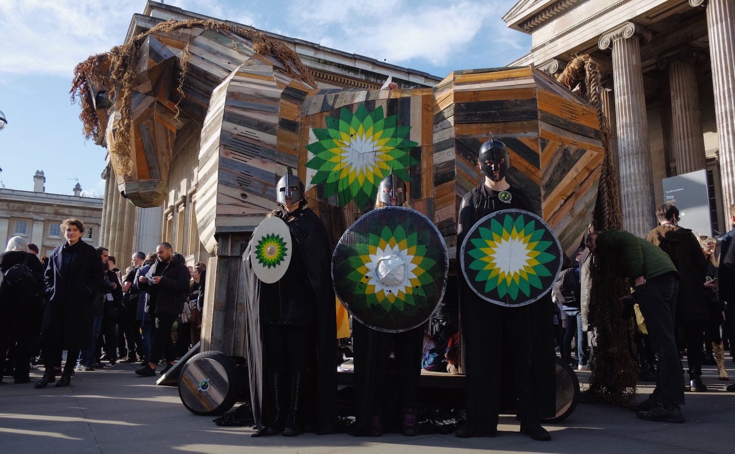 Hundreds of anti-oil activists occupied the British Museum last Friday to protest the oil company British Petroleum (BP)’s sponsorship of one of the museum’s current exhibitions, Troy: Myth and Reality. Members of the theatrical activist group BP Or Not BP? brought a four-meter model of a Trojan Horse emblazoned with the BP logo to the museum and stationed it in the courtyard for the protest, which lasted 51 hours.