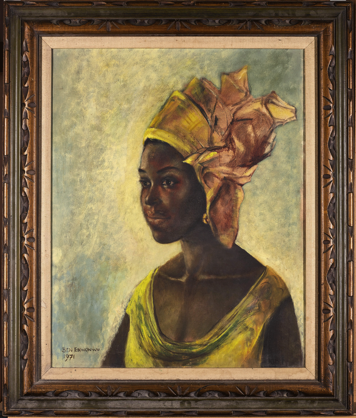 The painting “Christine” (1971) by Ben Enwonwu, one of Nigeria’s most influential modernist artists, sold for nearly eight times its estimated price at a Sotheby’s London this week. Incredibly, the painting hung in the home of the family of its subject, a hairstylist named Christine Elizabeth Davis, for over 40 years before they realized it had been painted by Enwonwu. It sold at the Modern and Contemporary African Art sale for £1,095,000 (~$1,411,329), while the full auction ended with a total receipt of £4,002,750 (~$5,159,084) in lots sold.