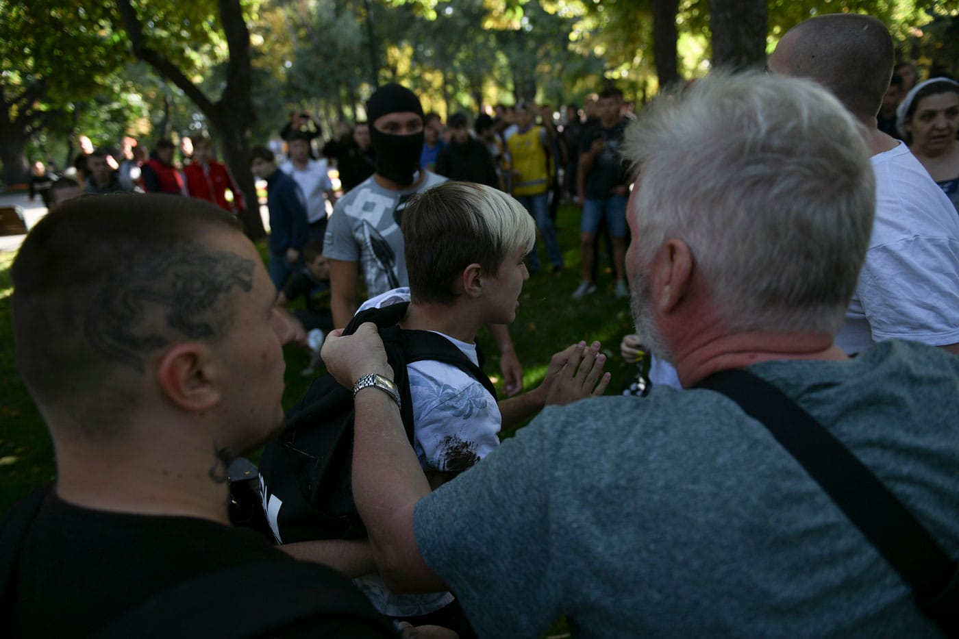 A photojournalist saved a teenage boy from a homophobic attack after an LGBTQ pride parade in Kharkiv, Ukraine. “A group of more than ten adult men surrounded a boy of maybe 14 to 16 years old and started to punch him laying on the ground when [Gleb] Garanich intervened,” Andrew Kravchenko, another photographer, said. | Hyperallergic