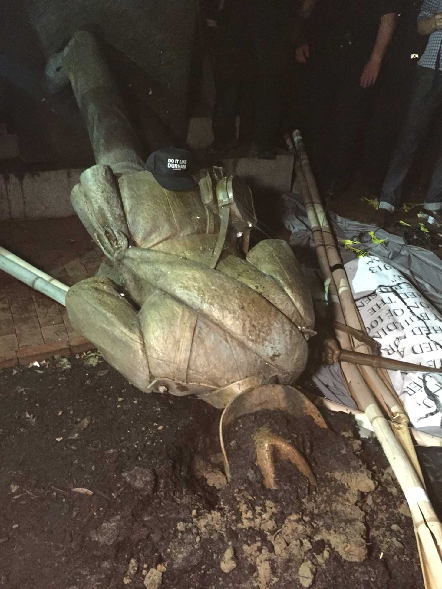“Silent Sam” after the statue was toppled in August (image courtesy Samee Siddiqui)