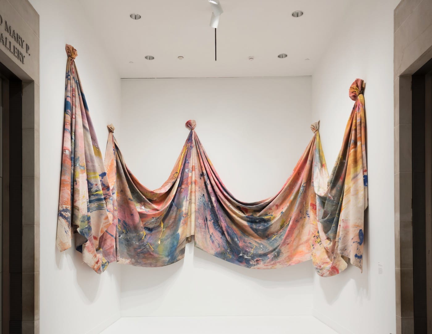 Soul of a Nation: Art in the Age of Black Power, installation view, (center) Sam Gilliam, “Carousel Change” (1970) (photo by Jonathan Dorado, courtesy Brooklyn Museum)