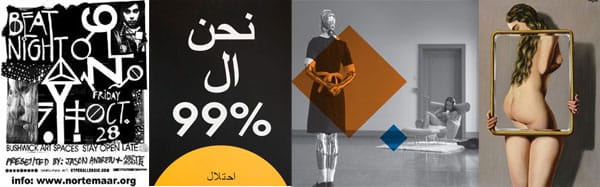 This Friday, Norte Maar is organizing their trademark Beat Night: Bushwick Art Spaces Stay Open Late event for the last friday of this month. Half art party and half bar crawl, this neighborhood art block party is a great way to explore select art spaces that range from legit commercial galleries to DIY apartment spaces. There are two special features for us at Hyperallergic this month: one, we’re sponsoring the night, two, our editor will be part of a one-night only performance titled “Clean Hrag” at English Kills. It is part of Rob Andrews’ first ever solo show.