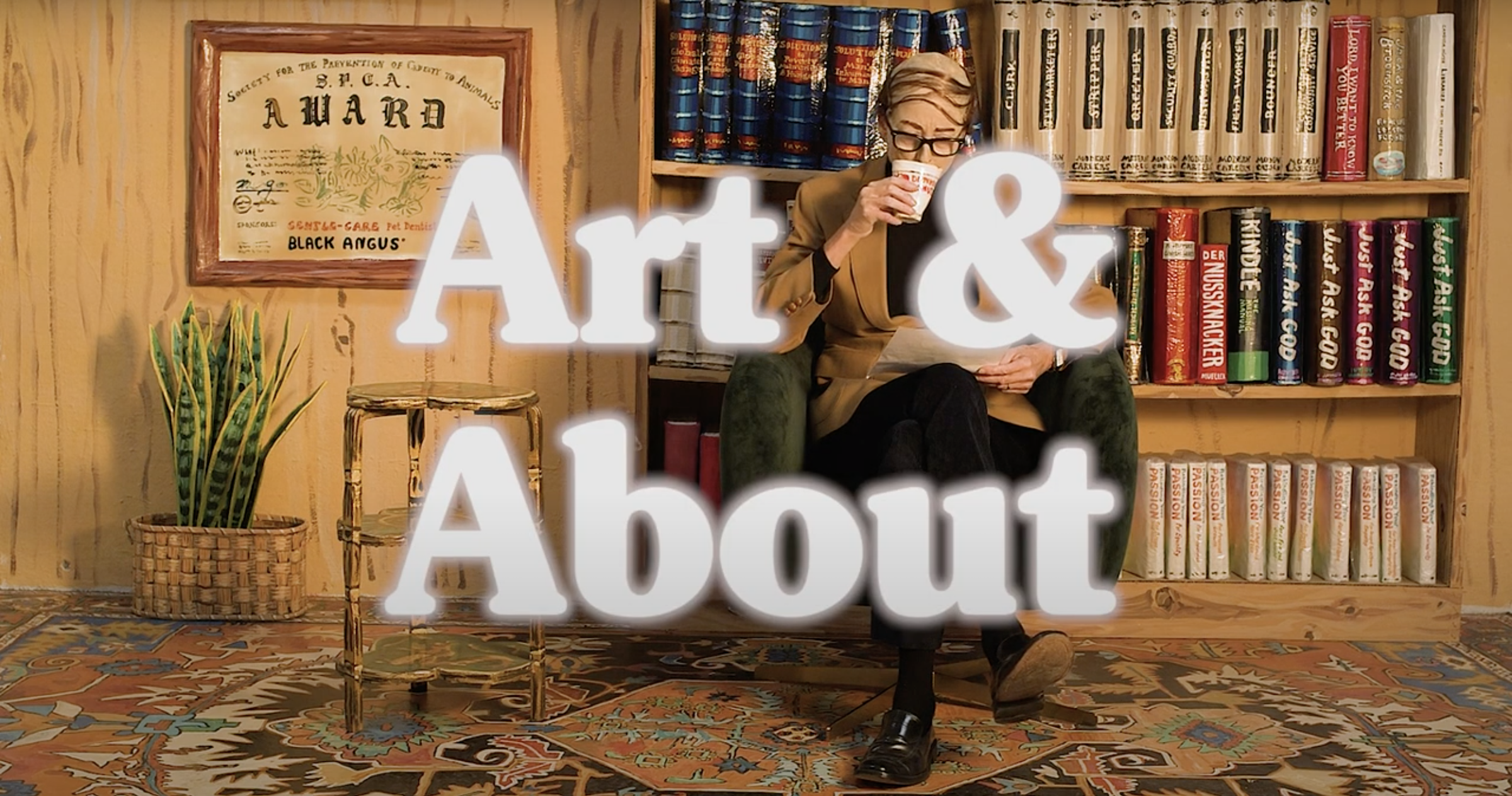 The many registers of cultural critique and creativity present in Lowe’s work converge in the video project "Art and About with Bill Mackelry"(2019-20), a collaboration with artist Omar Lopex. Here Lowe enters the picture, performing as Mackelry, who she describes as a “casually sexist and not overly bright talk show host.” Mackelry hosts his show from his office, decked out with furniture, a tome-laden bookshelf, Persian carpet, houseplant, and backdrop all fabricated by Lowe. The short video provides a retrospective look at some of Lowe’s early work, alternating between Lowe’s descriptive narration and Mackelry’s visible disinterest. The thoroughly meta experience of watching Lowe assess her own work from within it, as both herself and Mackelry, in the context of her own museum exhibition, serves as a fitting closing act to our journey through Lowe’s Multiverse. It’s as if Lowe’s presence relieves us of our duty as performers and returns us to our reality as unrelenting consumers of all things.
