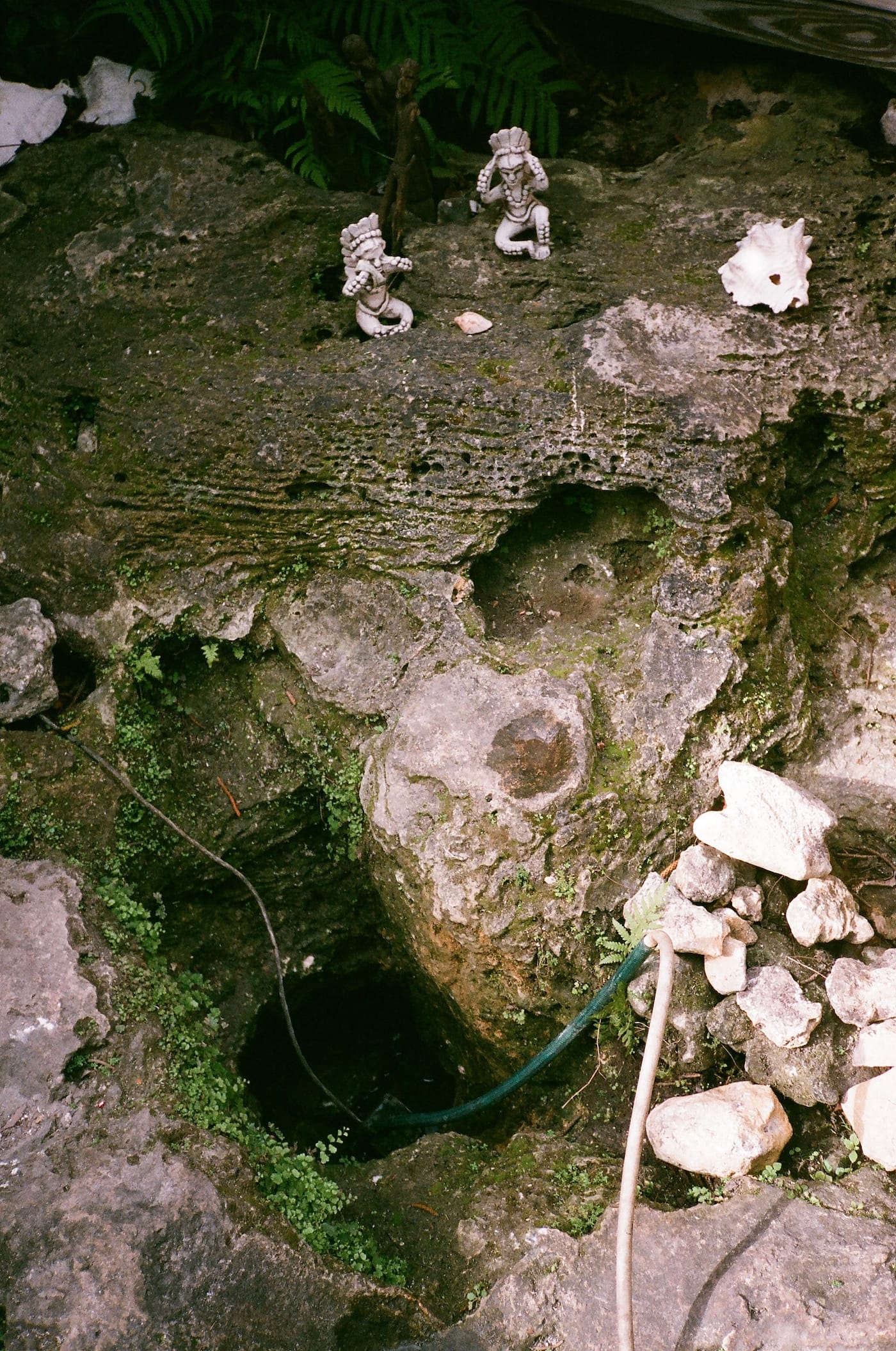 He did locate a cypress tree stump underneath his house, but the spring didn’t come until a hurricane split a mango tree in the corner of the yard, an experience he also describes in the film. After cutting it down, rainwater wouldn’t pool in the remaining pit: instead, it would swirl and disappear. As the New Times described it, he loosened the stump with a crowbar, pulled out a taproot, and unplugged the source. The water began to flow upward. Bermudez eventually located a pear-shaped limestone rock; this, he says in the film, was the well’s plug. He’s been drinking from the spring ever since.