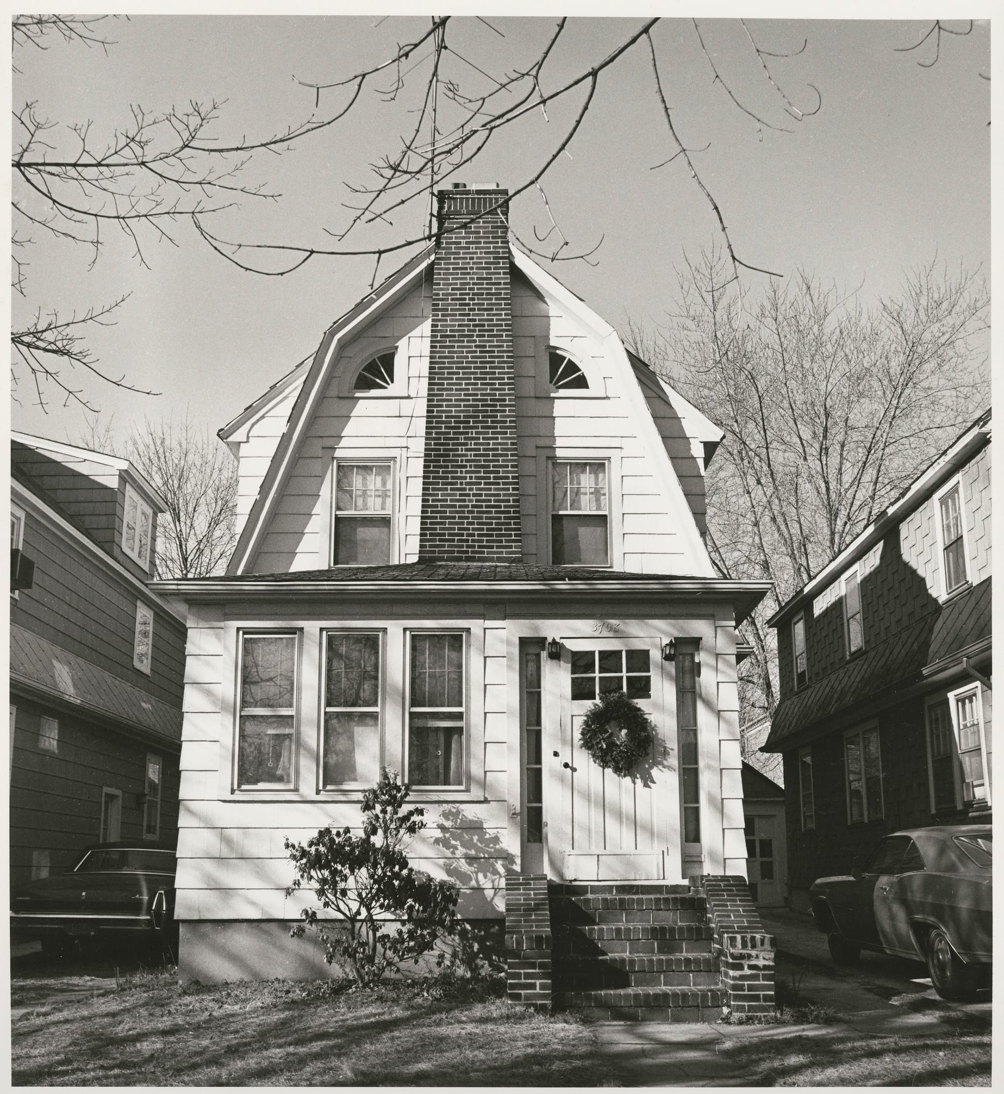 Left: Joseph Cornell’s studio in the basement of his family home in Queens, New York, 1971 (© Harry Roseman 1971) Right: An exterior view of The House on Utopia Parkway shows Joseph Cornell's completed work alongside his source materials. (photo by Thomas Lannes)