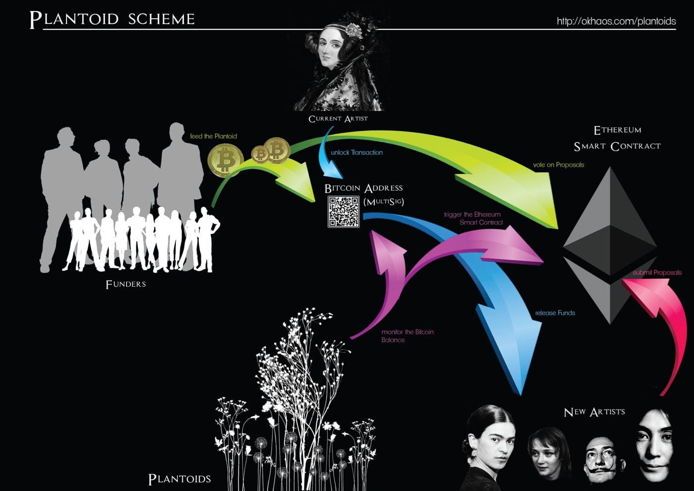 Now that the wild speculation on Bitcoin’s value and the explosion of fringe cryptocurrencies has died down, the cooling of the Bitcoin craze has revealed a contiguous conversation regarding the use of blockchain technology in the work of several artists, designers, and thinkers. Pseudonymous Bitcoin architect Satoshi Nakamoto’s loud absence has become the stuff of legend. Yet what, if anything, will be the eventual applications of his crowning achievement? Beyond the more practical and market-oriented functions of blockchain, what kinds of more creative, imaginative futures can be realized through the technology?