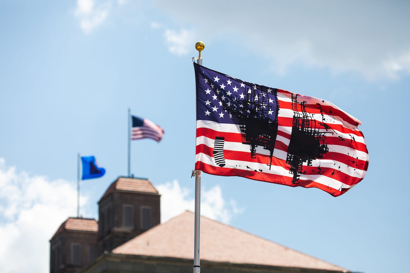 On the morning of the flag’s first full day on display inside the museum, I got ready for work with no idea how the day might unfold. I sat beside my partner and explained that on this morning, he should understand that I worked for a state university that allows concealed weapons on campus, and that there had been some controversy around the Pledges art project. I assured him that I loved the work I did, that I loved him, and that I was happy. These are strange times.