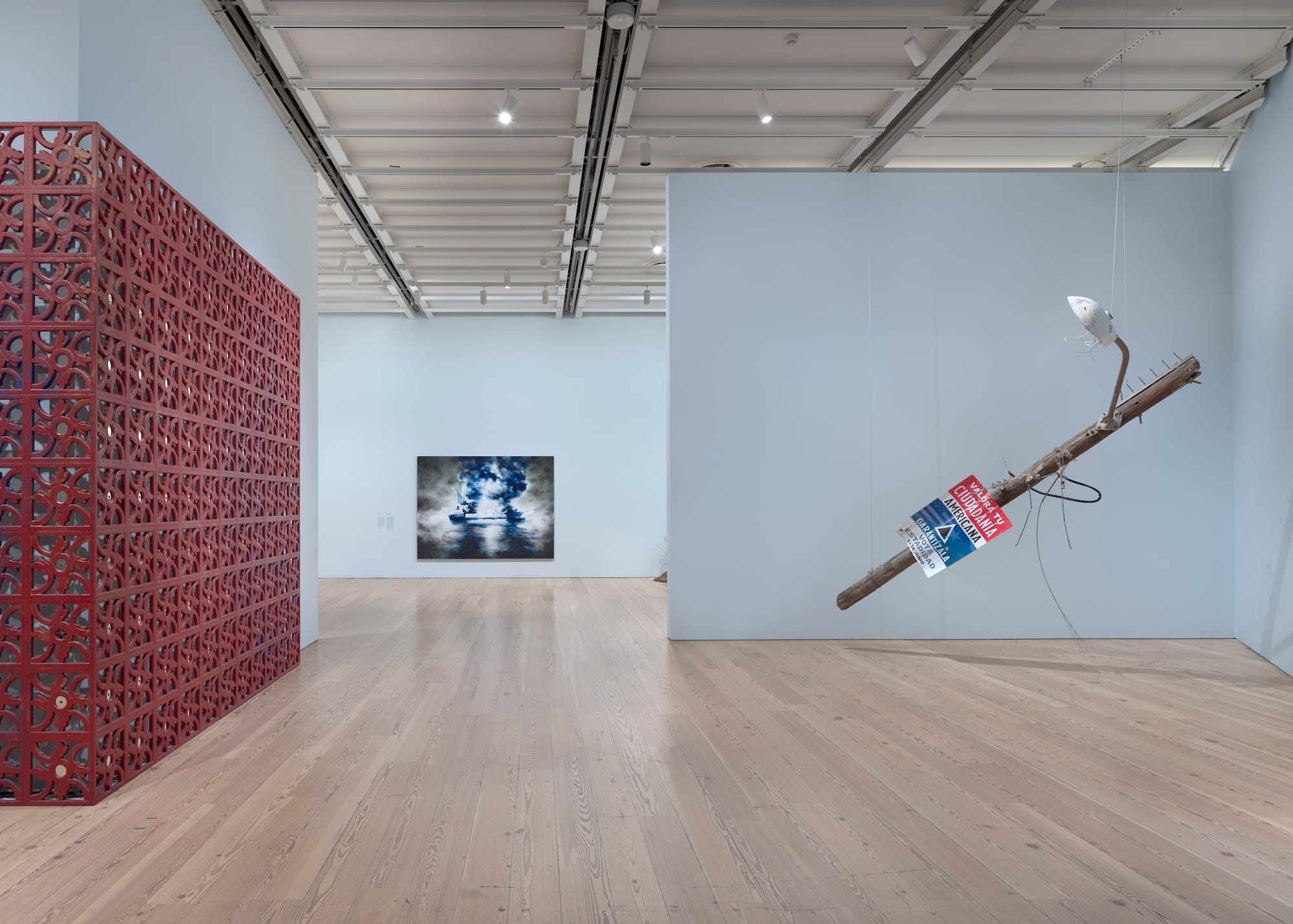 Long before Hurricane Joaquín began to brew, its warm vapors hovering menacingly along the Atlantic in a slow, furtive murmur, SS El Faro was doomed. In October 2015, the cargo vessel carrying food, medicine, and other critical supplies was caught in the swells of Joaquín on its journey from Florida to San Juan; subsequent investigations uncovered troubling safety violations, including outdated lifeboats, that contributed to the deaths of the ship’s entire crew of 33. “Collapsed Soul” (2020–21) by Gamaliel Rodríguez, part of an exhibition of works by contemporary Puerto Rican artists at the Whitney Museum of American Art, portrays the ship's ghostly hull evanescing in a pall of metallic blues in the middle of the ocean.