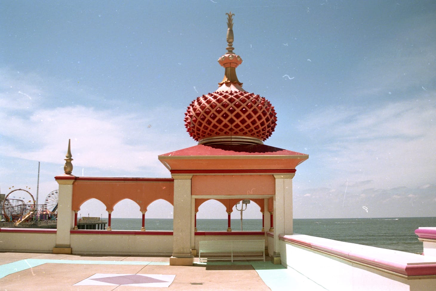 Allan deSouza’s Rumpty-Tumpty series (1997/2017) is a fascinating project that is more relevant today than ever. Photographing the now defunct Trump Taj Mahal hotel and casino in Atlantic City, New Jersey, deSouza frames his images to highlight the underlying Orientalism, a type of appropriation that renders “exotic” features like ornate onion domes and brightly colored surfaces into pleasure palaces dripping with the inferred fantasies of colonialism and leisure.